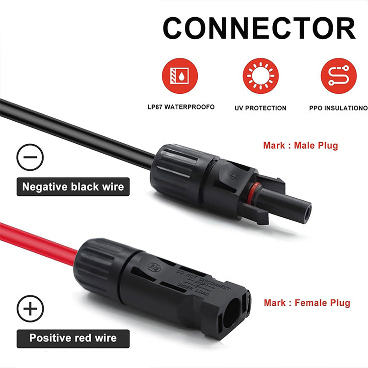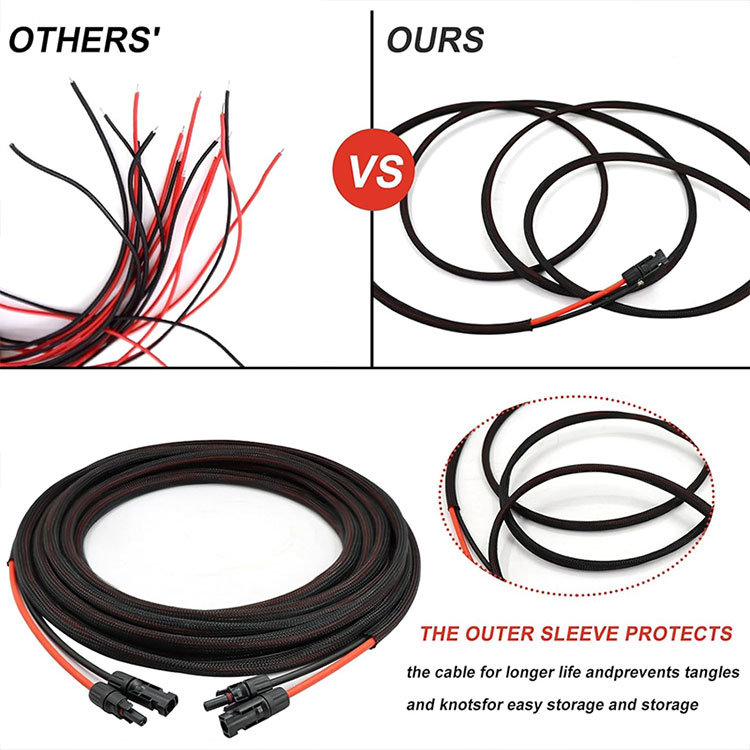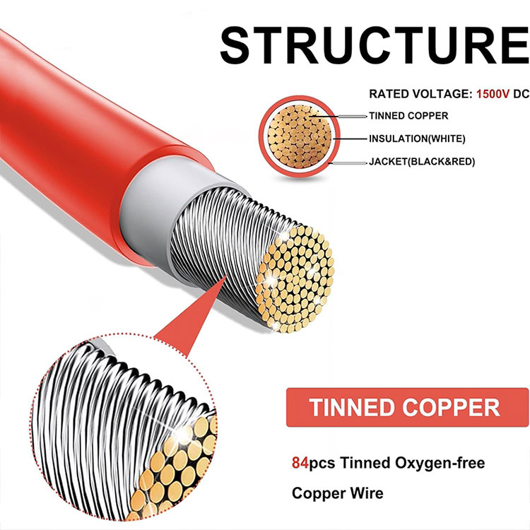Awọn ohun elo ti o ga julọ: Awọn okun onirin oorun jẹ ti bàbà ti o ga julọ tabi awọn ohun elo aluminiomu, eyiti o ni iṣiṣẹ ti o dara ati pe o le dinku pipadanu agbara, ni idaniloju lilo ti o pọju ti agbara oorun.